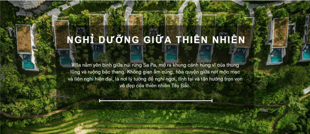Toạ lạc nơi địa hình ngoạn mục giữa núi non trập trùng của vùng cao Tây Bắc, khu nghỉ dưỡng như ẩn mình giữa biển mây Sapa, mang đến không gian thư giãn lý tưởng cùng tầm nhìn khoáng đạt ra những thửa ruộng bậc thang kỳ vĩ – nơi du khách có thể hít hà hương rừng, đón nắng sớm trên đỉnh núi, và cảm nhận nhịp sống chậm rãi của đất trời.